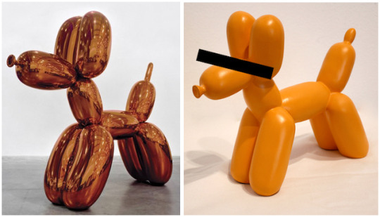 Koons’ Balloon Dog, left. Censored yet innocent balloon dog, right.