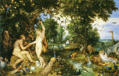 The Garden of Eden with the fall of man by Jan Brueghel the Elder with Peter Paul Rubens, c.1615.