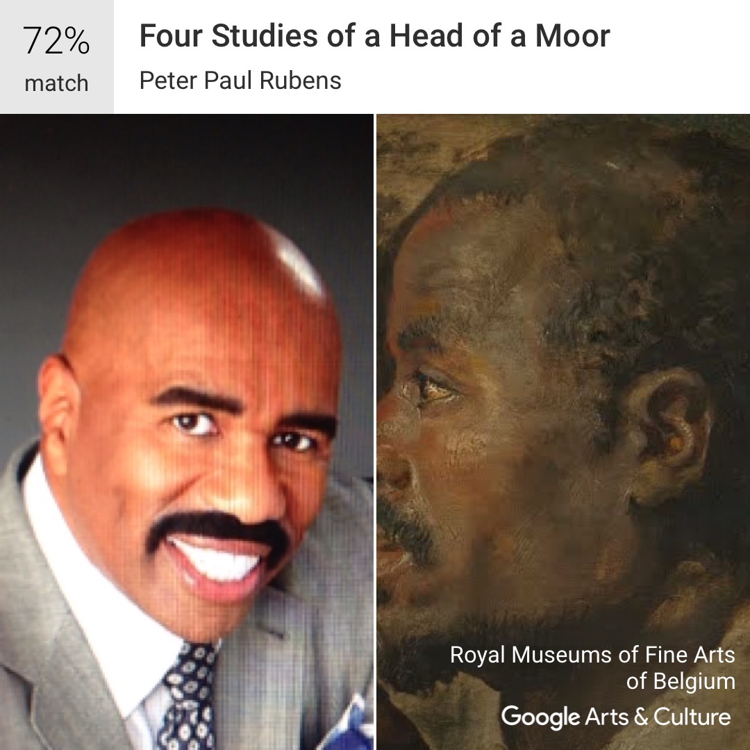 Adding to the bizarre match up from the Google Arts and Culture is Idris Elba with Ruben’s Four Studies of a Head of a Moor. It’s not so bizarre until Steve Harvey is also matched with the same painting. This limited pool of options for people of color using the selfie match feature is something we have all been noticing. It appears that there are not very many options for people of color on the Google Arts & Culture. Many articles have popped up citing a diversity issue with the app. Google has made an effort to diversify the museums in its collection, which initially mostly included museums in the US and Europe. Now, it includes about 15,000 institutions from around the world. However, it appears that the majority of the collections are still American and European.