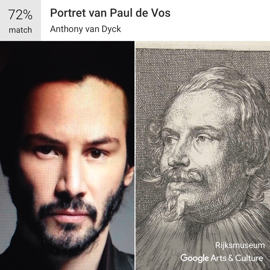 Keanu Reeves of course matched with a 17th century portrait by Anthony van Dyck. Rumor has it Keanu Reeves is immortal and once went by the name of Paul Mounet. Did Google just reveal Keanu Reeves’ 17th century identity?