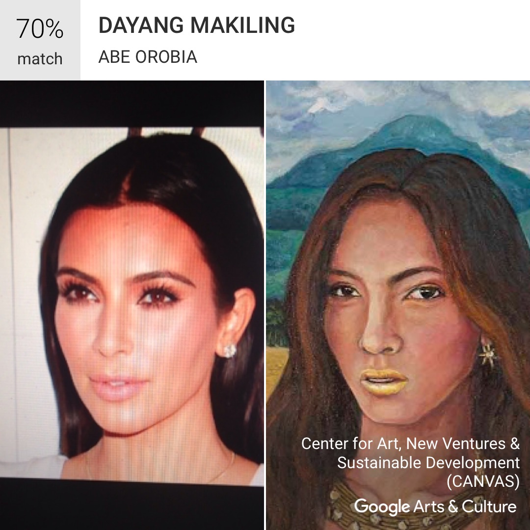 Queen of selfies, Kim Kardashian matched with Dayang Makiling by Abe Orobia. According to Philippine mythology, Dayang Makiling is one of two goddesses who lived on Mount Makiling. No relation to Kim Kardashian, but the myth bears small resemblances to the Polynesian myth of Te Fiti, who recently made a cameo in Disney’s Moana.