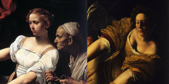 Caravaggio’s Judith (left) and Gentileschi’s Judith (right).
