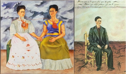 The poster above is a composite inspired by two Kahlo paintings, The Two Fridas and Self-Portrait with Cropped Hair. Though director Julie Taymor likely had nothing to do with the poster, it is indicative of the film’s skilled incorporation of Kahlo’s paintings to progress the plot and highlight themes. The paintings are located at the Museum of Modern Art Mexico and the Museum of Modern Art, New York respectively.