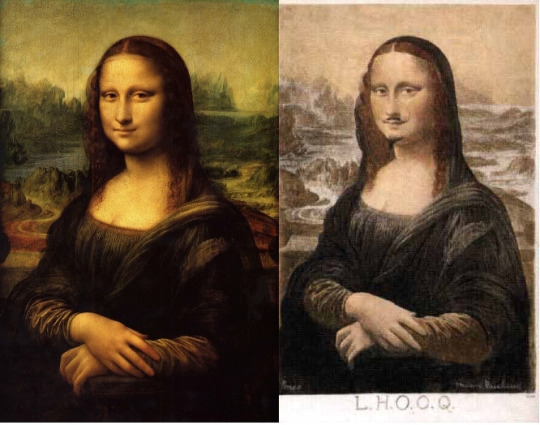 For those of you who aren’t caught up on your art history, in 1919, Duchamp drew a mustache and goatee on a Mona Lisa postcard and titled it L.H.O.O.Q. that when quickly read out loud in French sounds like “Elle a chaud au cul,” which translates to “She has a hot ass.”