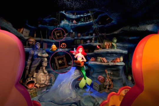Seen here on The Little Mermaid ride is The Magdalen with the Smoking Flame by Georges de La Tour at the Los Angeles County Museum of Art. It’s a direct reference to the film when Ariel doesn’t know how fire works. Too bad Disneyland decided to make this decently sized painting tiny even though it’s fairly accurately portrayed in the movie.