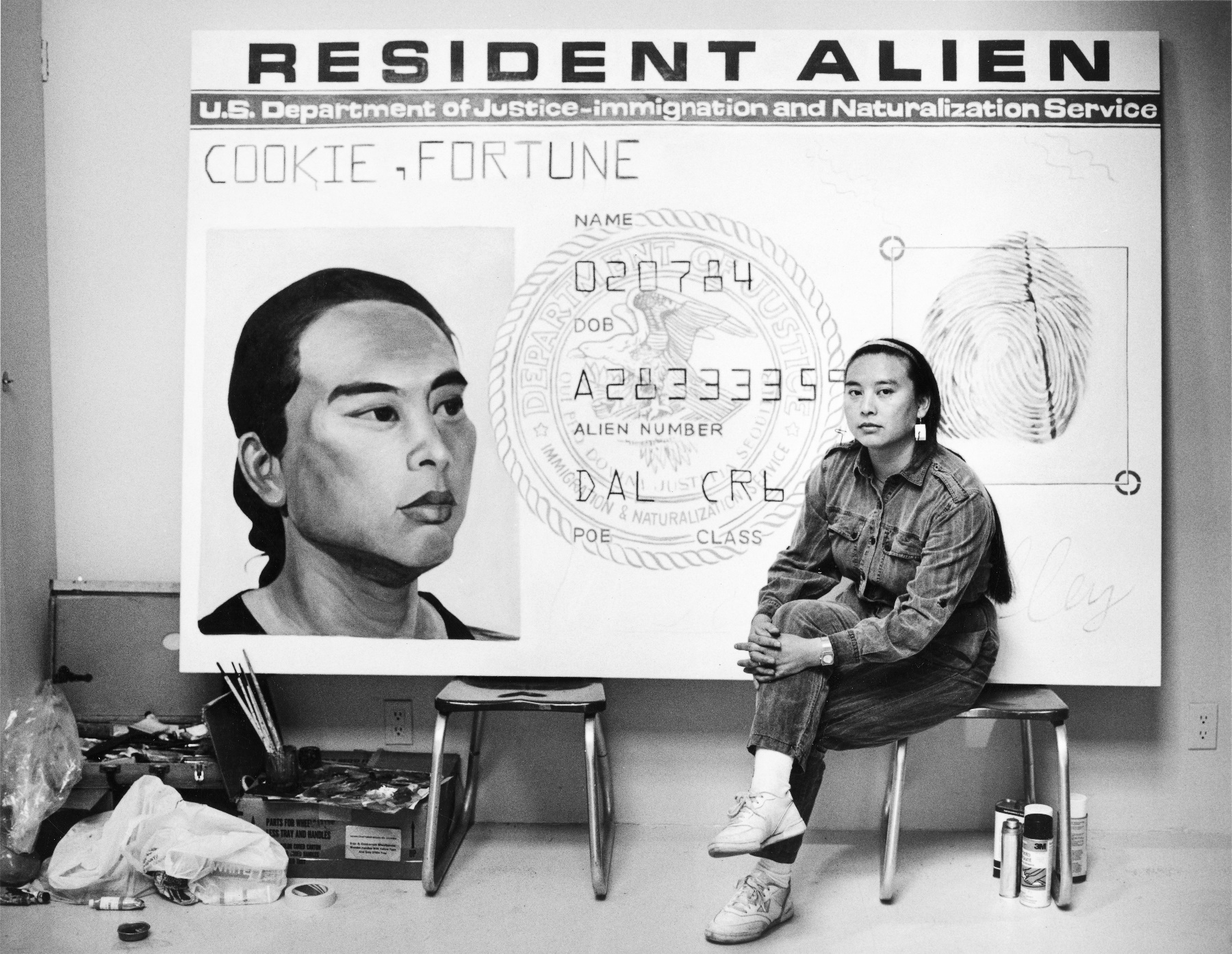 Hung Liu with her work Resident Alien in 1988 (credit)
