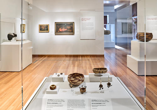 Photo credit for all images: Installation view of "Jules Tavernier and the Elem Pomo", de Young, San Francisco, 2021. Photograph by Randy Dodson, © Fine Arts Museums of San Francisco