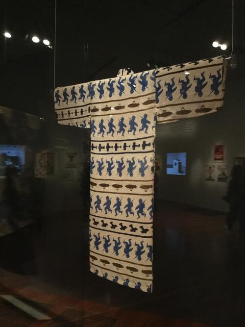What was perhaps most illuminating were the ten Japanese “propaganda kimonos” on display - a recently uncovered collection of colorful kimonos worn by Japanese citizens of the era displaying military or nationalistic themes and imagery.