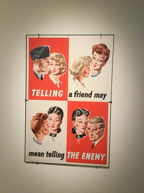 It was a highly entertaining and insightful discussion, and though none of us, not even our guest lecturers, felt the issue had come even close to being resolved, there was a sense of closure with this message: we are paying attention, we are taking this on, we are making changes. What those changes will be, and how soon they will come, is still TBD. Nevertheless, concerned readers should keep in mind the first step toward progress is remembering where we come from; this is a strong endorsement for Weapons of Mass Seduction, an exhibit which, through its small but absorbing historical catalog of the manipulative and ingenious efforts of another era to induce and sway its public, we can obtain insight into our own times and the potential pitfalls of digital engineering. Less memes, this writer says, more museum trips.