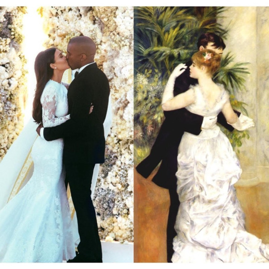 Dance in the City by Pierre-Auguste Renoir at Musee d’Orsay (1883) / Kim and Kanye’s wedding photo (instagram @kimkardashian) via Dazed Digital