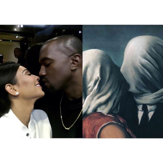 The Lovers by René Magritte (1928) at MOMA / Kimye (instagram @kimkardashian) via Dazed Digital