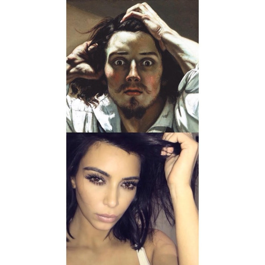 The Desperate Man (Self-Portrait) by Gustave Courbet (1845) / Selfie (instagram @kimkardashian) via Dazed Digital