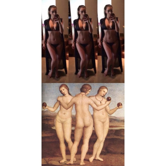 The Three Graces by Raphael (1505) / The three Kims (instagram @kimkardashian) via Dazed Digital