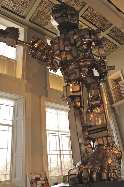 This massive 23 ft statue of Vulcan guards the patrons of the cafe at the Scottish National Gallery of Modern Art. His gigantic head rears up through the atrium to the very top of the building. Who knows what Edoardo Paolozzi had in mind when he welded this steel giant together. Could it be the largest self-portrait ever?