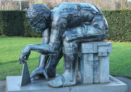 Master of the Universe, Isaac Newton, measuring the lawn of the Scottish National Gallery of Modern Art. Photo by Ezinda Franklin-Houtzager.