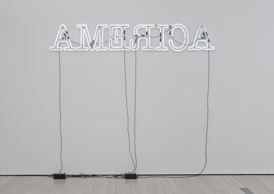 Glenn Ligon’s Rückenfigur embodies MLK’s clear distinctions between the white experience and black experience in America. Although the neon letters are flipped, the word still looks like “America.” Through his art, Ligon gives outsiders the opportunity to see the flaws embedded in America, and the ways in which the country continues to exist despite the systemic issues that have made America what it is today.