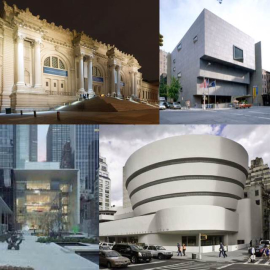 Any artist worth their salt wants to show their work in these museums: Whitney Museum of American Art, Solomon R. Guggenheim Museum, Museum of Modern Art, and the Metropolitan Museum of Art.