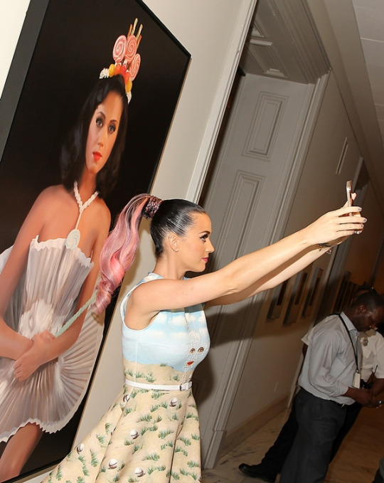 And here’s Perry taking a selfie with her own portrait titled Cupcake Katy at the Smithsonian National Portrait Gallery in Washington, DC. Unsurprisingly, she knows exactly how to pose for this one.