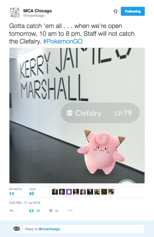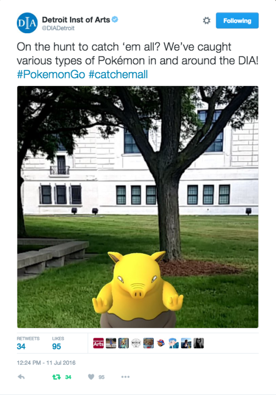 There have already been countless reports of trainers motivated by the game to go outside for the first time in their adult lives, and as a result finding newfound connections with their communities. The connection that I naturally find most endearing is the rediscovery of public art and museums. That’s right, after years of countless scavenger hunts, cocktail nights, and free admission days museums have finally found a way to get the diverse youth demographic through their doors, or at least outside of them. Check out some of the museums smart enough to jump on the trend and trainers artsy enough to catch amongst their collections: