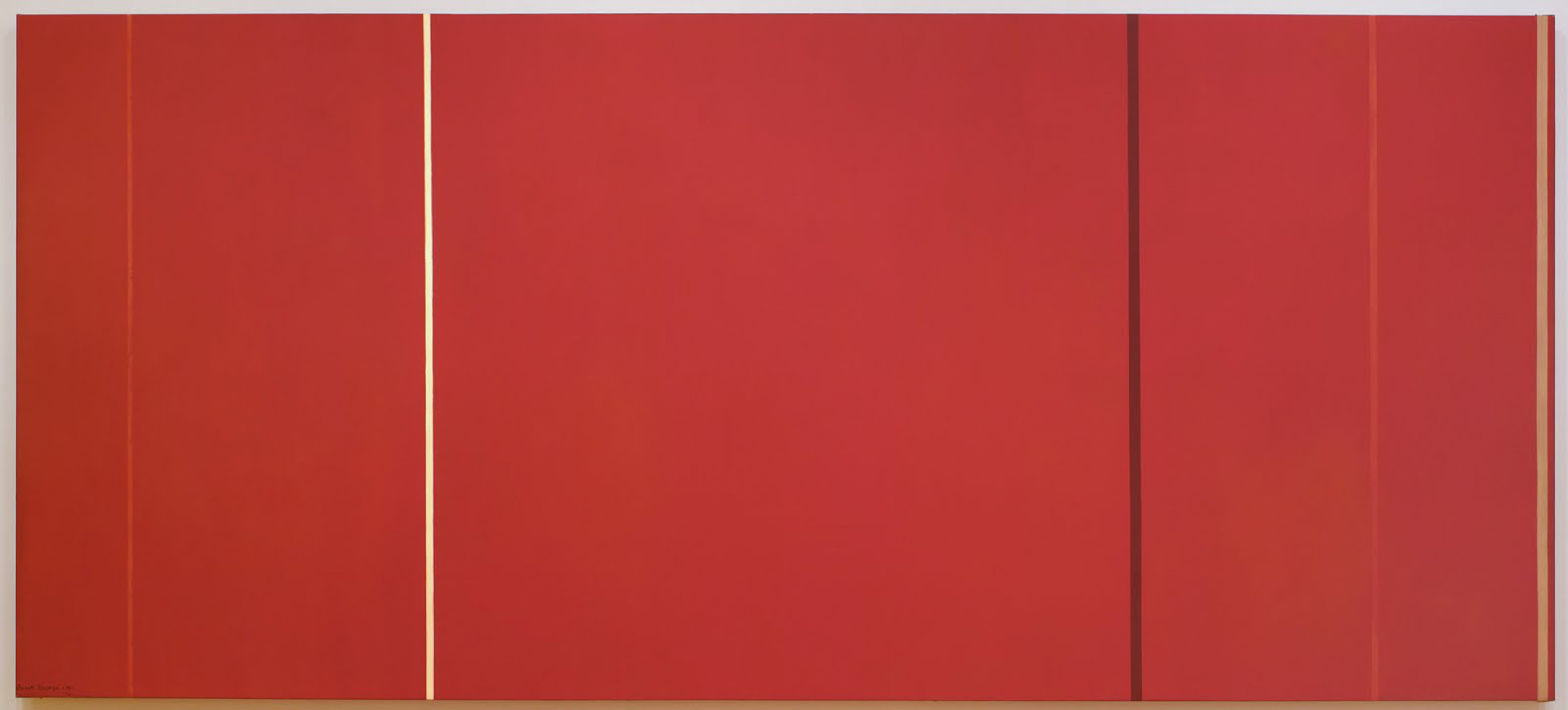 Before becoming an artist, Newman was a curator and lecturer, and he definitely fancied himself to be a philosopher of sorts. After he made his first signature “zip” (the name for those stripes on the red canvas), he was so blown away that he had to think about what it meant for the next eight months
