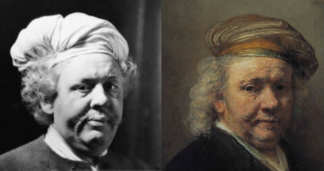 Charles Laughton in Rembrandt (left), and Self-Portrait by Rembrandt van Rijn, in the Mauritshuis (right).