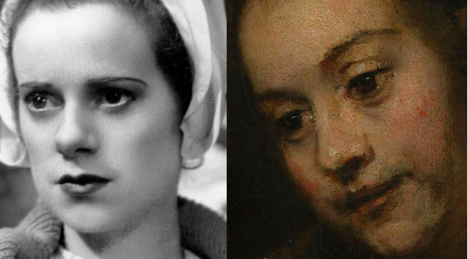Elsa Lanchester as Hendrickje Stoffels (left), and detail from a portrait of the real Stoffels by Rembrandt (right). Another inspired casting decision.