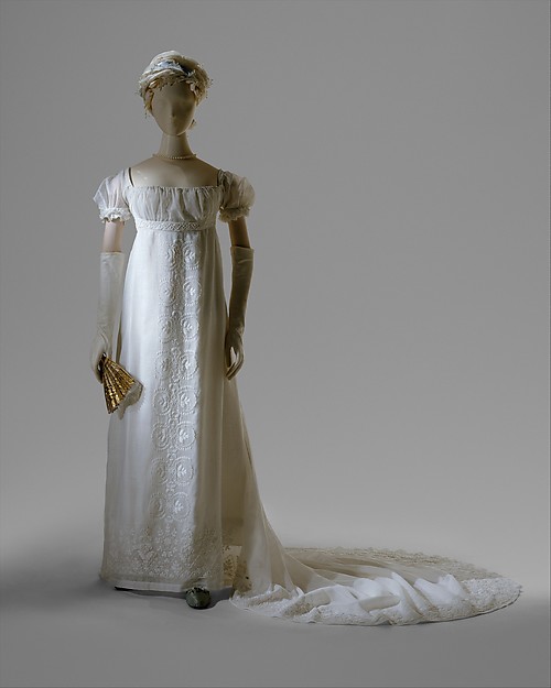 Evening Dress worn by Betsy, possibly her wedding dress, in the Metropolitan Museum of Art. Note the transparent bodice and sleeves: I do declare, fetch the smelling salts!