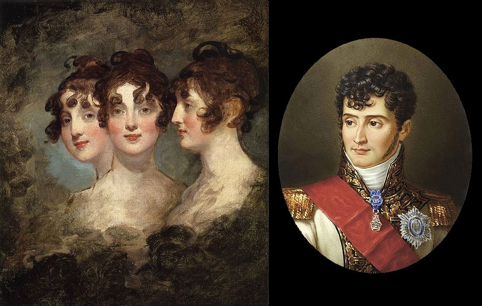 Triple Portrait of Elizabeth Patterson by Gilbert Stuart, in the Metropolitan Museum of Art (left). Jerome Bonaparte by Sophie Lienard (right).