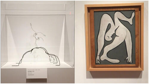 (L: Acrobats by Alexander Calder, 1929; R: Acrobat by Pablo Picasso, 1930)
