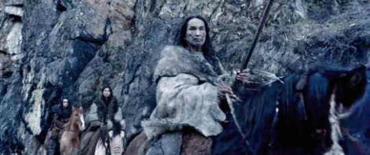 In the film, a Native American chief searches for a daughter captured by the white men: scene from The Revenant.