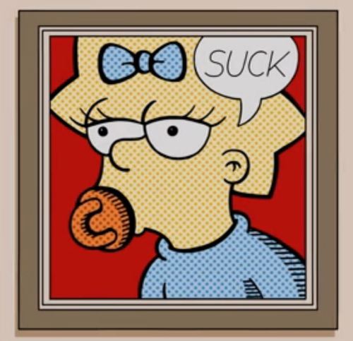 First, you got Maggie as a rude Roy Lichtenstein comic. (Roy was a Pop artist and homies with Andy Warhol):