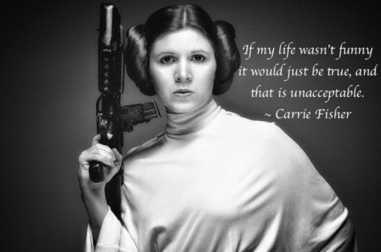 Carrie Fisher’s interpretation of Princess Leia, not as a kiss-ass damsel, but as a kick-ass warrior, rewrote the fairytale narrative in woman’s favor. In short, If she had to be the girl in the gold bikini, she was going to be the girl in the gold bikini who strangles her slimey, green sexual abuser with her own chains. Plus, she came back in the reboot as a freakin’ general.