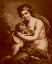 Reproduction of Venus binding the wings of Cupid, which Vigee Le Brun painted while in labor.
