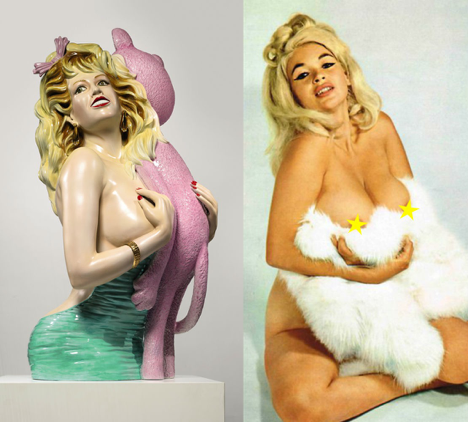 Pink Panther by Jeff Koons at the Museum of Modern Art (left), and Jayne Mansfield pin-up, circa 1960s (right).
