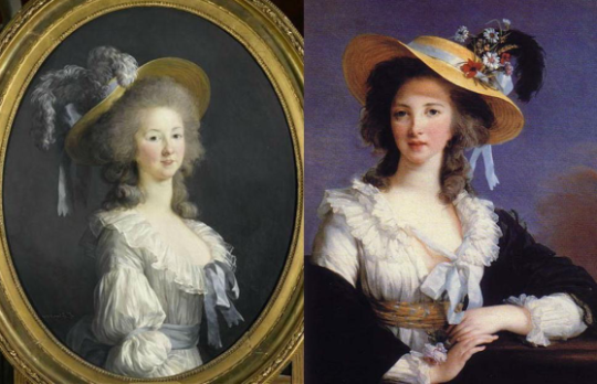 Vigee Le Brun painted both of the Queen’s best girlfriends, the Princess de Lamballe and the Duchess de Polignac. The two women couldn’t have been more different, more frenemies than friends. Lamballe had modest looks and a reputation for chastity. To quote Clueless, Vigee Le Brun thought she was “a full-on Monet,” not really pretty, but appearing so at a distance. Polignac had the face of angel, often compared to Raphael’s Madonnas, but she was anything but virginal. She was accused of being Marie Antoinette’s lesbian lover, or alternately her pimp, facilitating the Queen’s affair with Count Axel von Fersen when she wasn’t busy having lesbian sex with her. Lamballe was considered too virtuous and dimwitted for such intrigues, but secretly conspired against Polignac, her rival for the Queen’s favor.