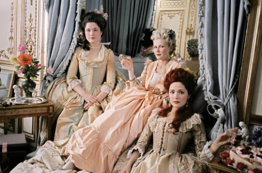 Mary Nighy as Lamballe, Kirsten Dunst as Antoinette, and Rose Byrne as Polignac: the original girl squad in Sofia Coppola’s Marie Antoinette (2006).