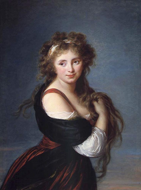 Vigee Le Brun’s self-portraits with her daughter Julie are among her most beautiful and famous works, but the reality was far from picture perfect. The artist made the radical decision to raise Julie as a single mother, taking her into exile abroad. In Russia, Julie grew into a gorgeous but headstrong teenager who resented her mother’s suffocating love. Against her mother’s wishes, she fell in love with a brooding young secretary with few career prospects. When Julie started starving herself, her mother finally agreed to the marriage. After only two weeks, Julie grew disgusted with her new husband because she didn’t like the way he looked in his robe, and the marriage unravelled.