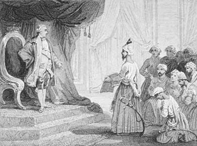 Mohammad Dervish Khan came to France on a mission from India to form an alliance against the British. The Indian entourage of over thirty people held exotic entertainments such as hookah parties and Indian suppers. Marie Antoinette herself tasted their cuisine, but found the spice intolerable. Vigee Le Brun was even invited to a private dinner, at which she was obliged to sit on the floor, and eat curries served with bare hands instead of silverware. She said of the experience, “I’m sorry to say we had a miserable time.”