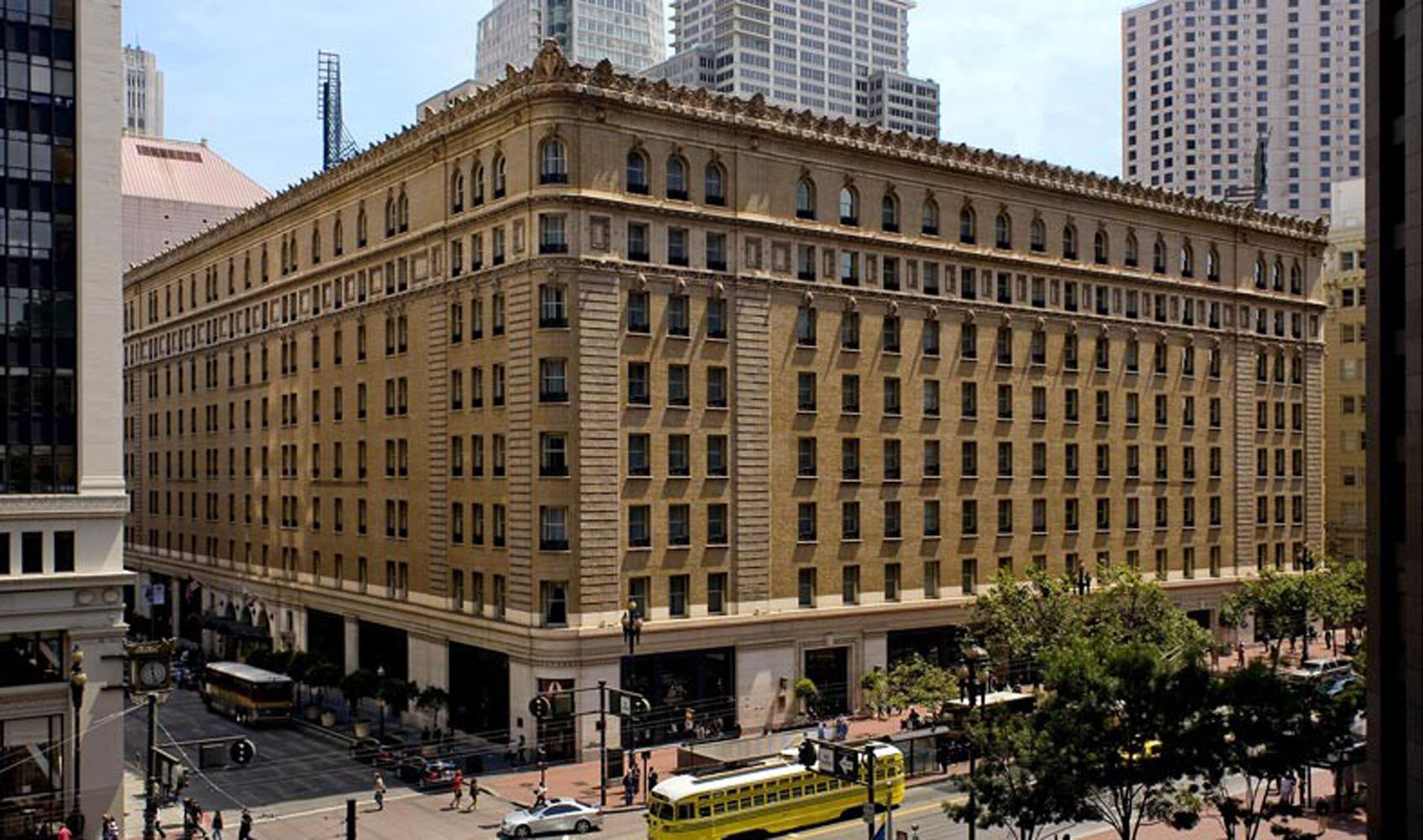 The present structure opened on December 19, 1909, on the same site as its predecessor. The hotel was closed from January 1989 to April 1991 to undergo a two-year renovation and seismic retrofit. Occupying most of a city block, the hotel's now more than century-old nine-story main building stands immediately adjacent to both the BART Montgomery Street Station and the Monadnock Building, and across Market Street from Lotta's Fountain.