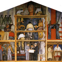 Ninety years later, it became the San Francisco Art Institute, and it has resided at 800 Chestnut Street since 1926. The Chestnut Street campus, between 1930 and 1931, became the site of a classic socialist realist mural by Diego Rivera, whose portrayal of the proletariat helped to define the David-influenced genre of postwar socialist realism. Like Bertolt Brecht's plays, Rivera's mural gives a snapshot of a construction process, with the capitalists wedged in the center, surrounded on all sides by laborers.